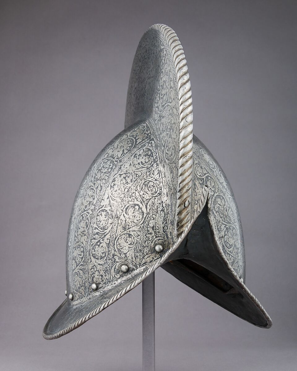 can resist all the blows of pike, halberds & swords: The Reines & the testiere[1] furnished between two leather chainettes, with another false Rein of the same, so that if by chance the Reins were broken, or cut, they have recourse to this false rein, the horse being as useless in combat without a rein, as the ship without a rudder in the hand of a pilot. As for the light horses, they are taken from all sorts of people among the populace, provided that they are courageous & of good character & that they have means to own a horse. And when they do not want to, they are compelled, their property exceeding five hundred livres of income without anything being given to them, except when they are in actual service; their defensive weapons are the rondachel in an oval of three feet long & two wide, covered with leather & lined with a light circle of copper. The light Cuirass of boiled leather to protect from the swords & throwing weapons, trimmed at the bottom all around with a piece of mail, or with a stocking of grommets coverings them up to the knees with the back & the sides of their horses. The sleeves also of mail with a pointed morion covered with a plume. Their offensive weapons are, a good pis– tol |